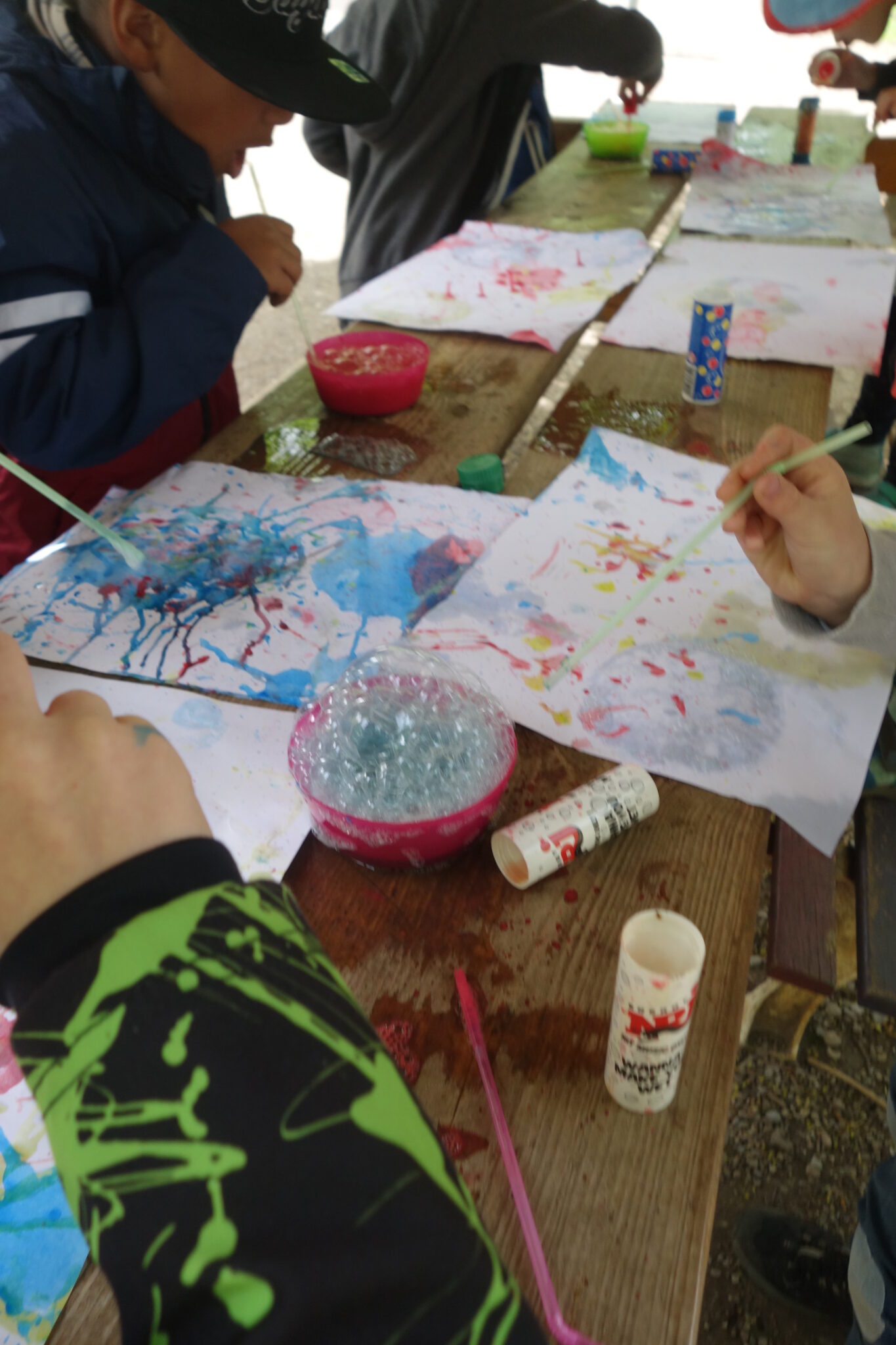 Das Herstellen von Kunst mithilfe von bunten Seifenblasen bereitete ihnen viel Freude.