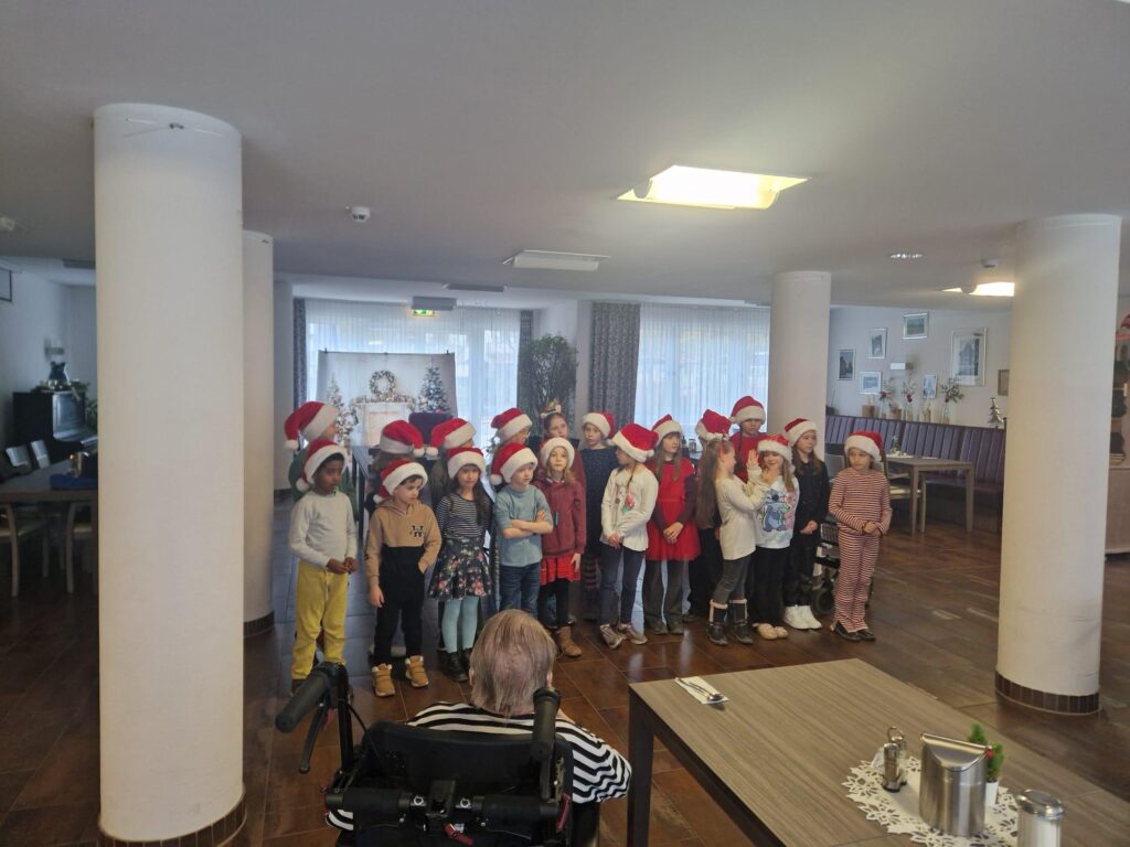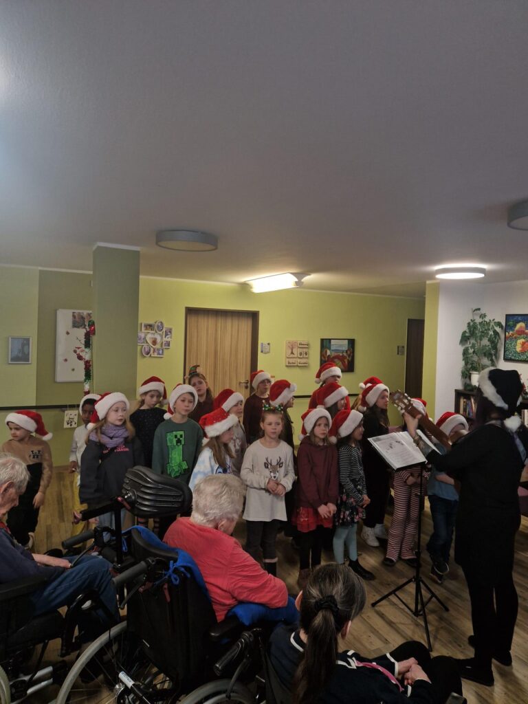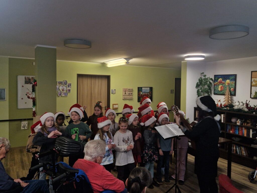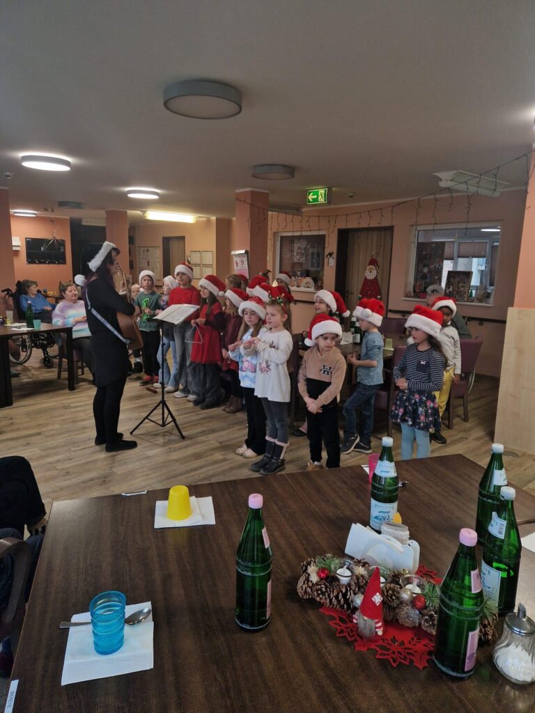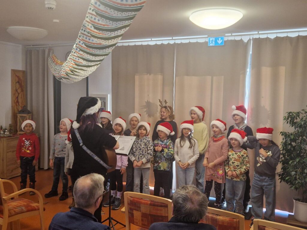 In den ersten Wochen des Advent brachten Frau Kullmann und unsere Chorkinder Freude, Musik und eine fröhlich besinnliche Stimmung in die Tagespflege der Diakonie und das Seniorenheim Azurit. Außerdem traten Sie im Anger 1 auf und verbreiteten mit ihren Mützen weihnachtliche Stimmung.