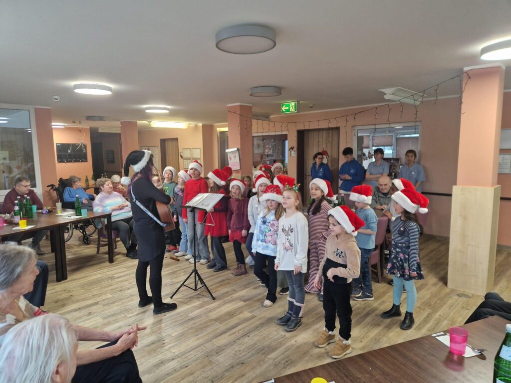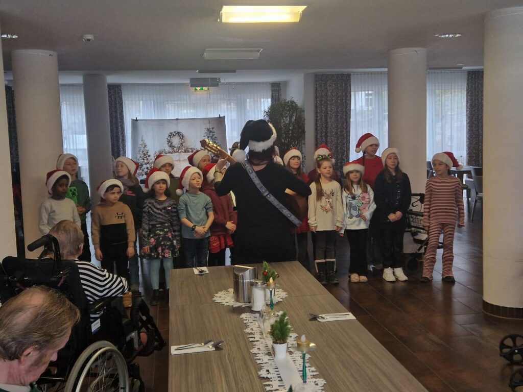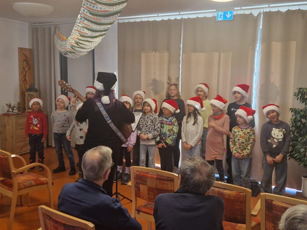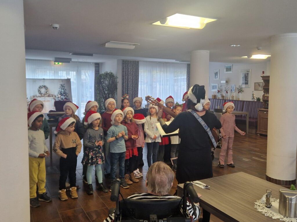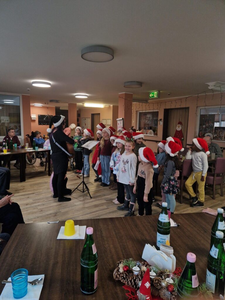 In den ersten Wochen des Advent brachten Frau Kullmann und unsere Chorkinder Freude, Musik und eine fröhlich besinnliche Stimmung in die Tagespflege der Diakonie und das Seniorenheim Azurit. Außerdem traten Sie im Anger 1 auf und verbreiteten mit ihren Mützen weihnachtliche Stimmung.