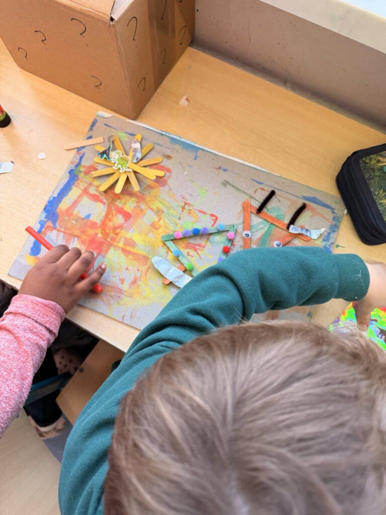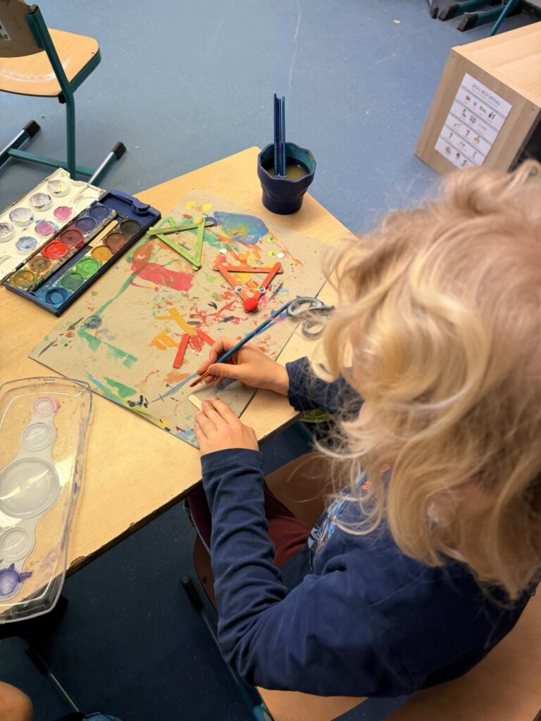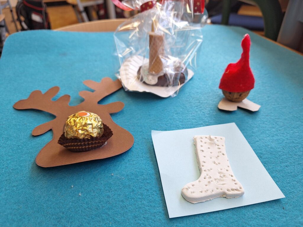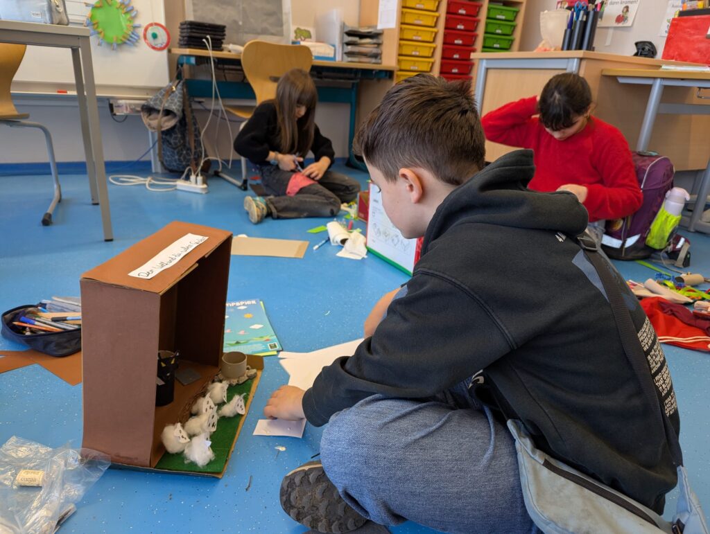 Zusätzlich wurden in einigen Stammgruppen Bastelarbeiten durchgeführt, bei denen die Schülerinnen und Schüler Tiere aus Eisstäbchen gestalteten.