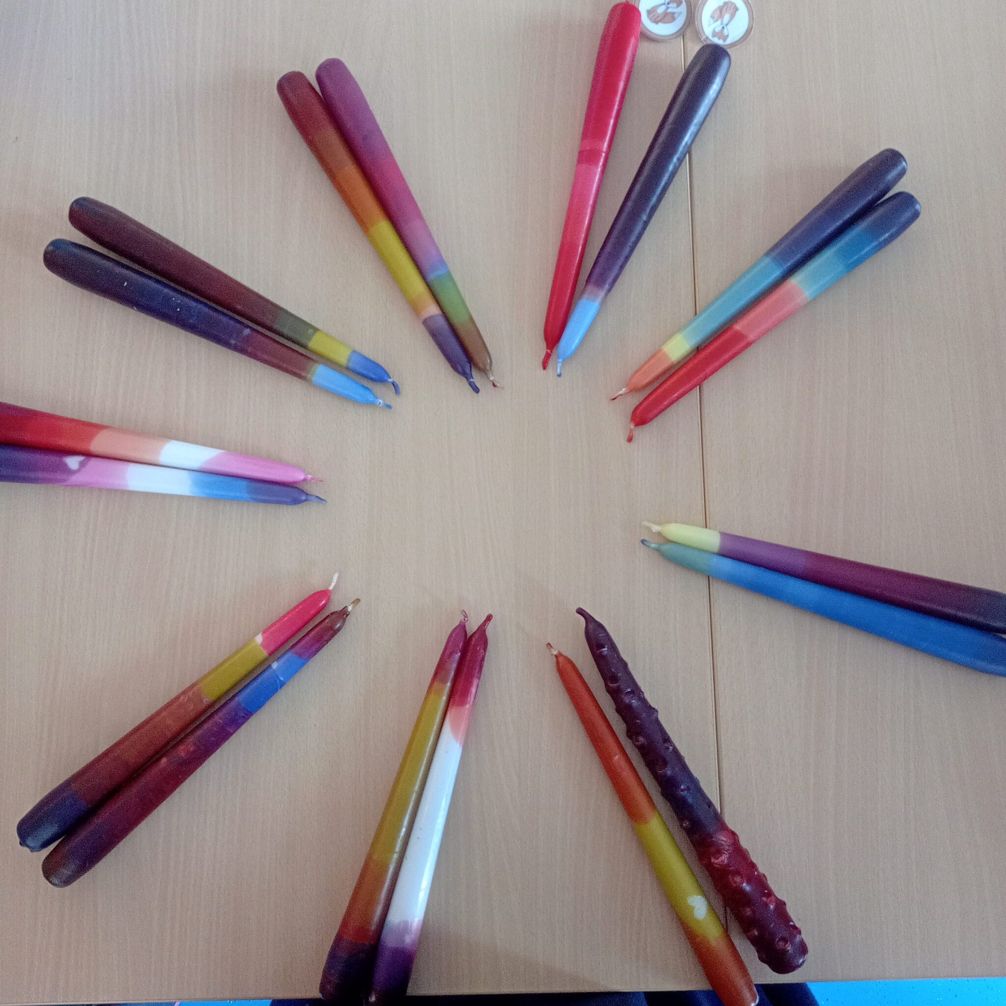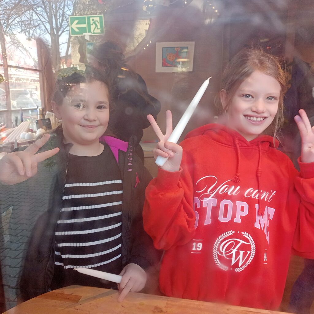 Der Dienstag stand in mehreren Stammgruppen im Zeichen der Kerze. Die Stammgruppen 13 und 14 stellten essbare Kerzen aus Butter her, während Stammgruppe 3 die Kerzenwerkstatt auf dem Erfurter Weihnachtsmarkt besuchte und dort eigene Kerzen gestaltete.
