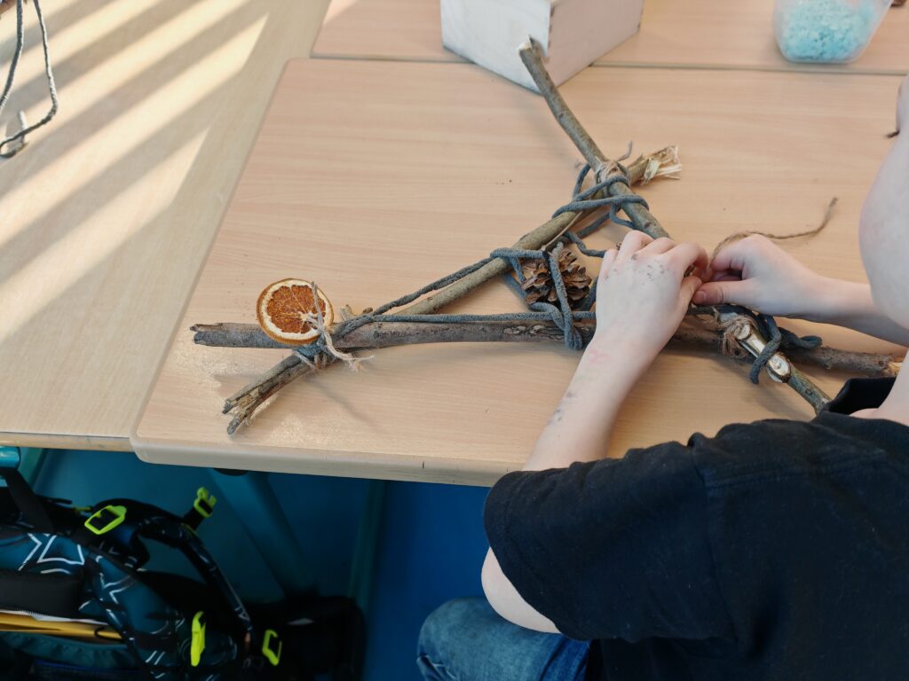Die Kinder der Stammgruppen 12 und 13 bastelten mit Naturmaterialien, lauschten Weihnachtsgeschichten, stellten Seife her und gestalteten kleine Wichtel. Die Schülerinnen und Schüler der Klassenstufen 3 und 4 setzten ihre Märchen kreativ im Schuhkarton um und schrieben Briefe sowie Weihnachtskarten. Die Stammgruppen 5 und 6 führten gemeinsam mit dem Weltentdecker-Kindergarten ein Hörprojekt durch.