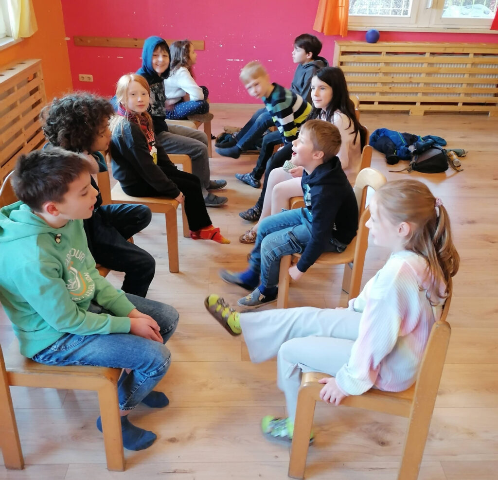 Nach 3 Tagen Streitschlichterausbildung im Kinderfreizeittreff „Hoppla“ ist das Team komplett. In der Mediatorenausbildung haben die Kinder viel über Gesprächsführung, Konflikte – und wie man sie lösen kann – gelernt.  Am Ende der Ausbildung haben alle ein Zertifikat erhalten.